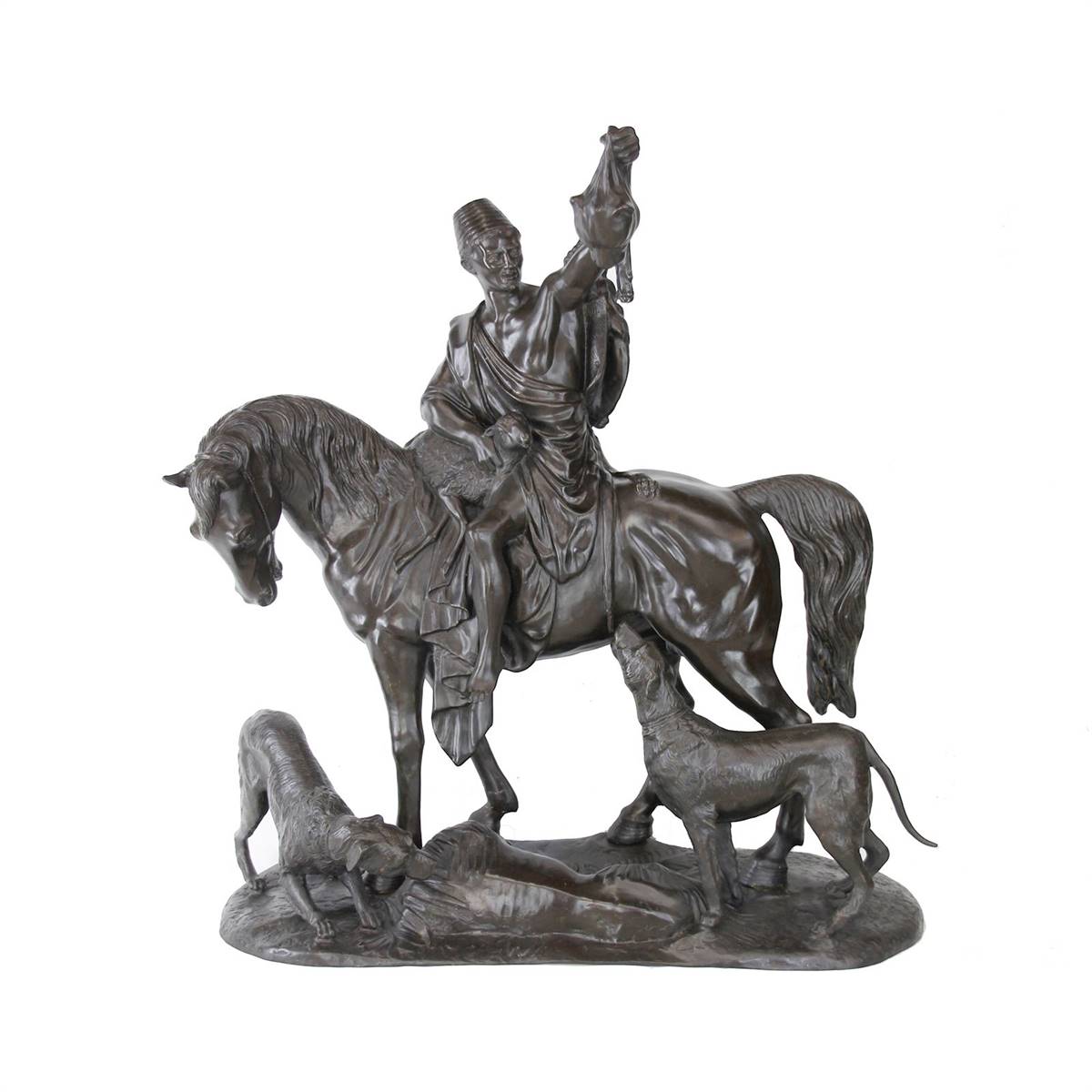 İMZALI, ATA BİNEN ERKEK FİGÜRLÜ BRONZ HEYKEL
