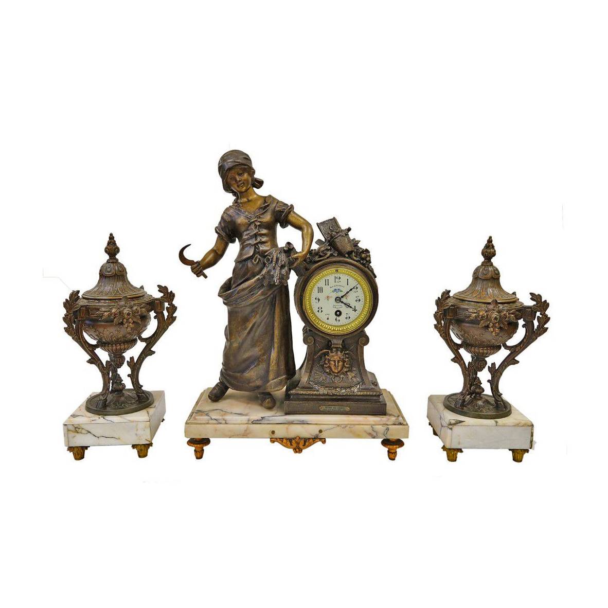 par Hip. MOREAU İMZALI BRONZ HEYKELLİ SAAT TAKIMI