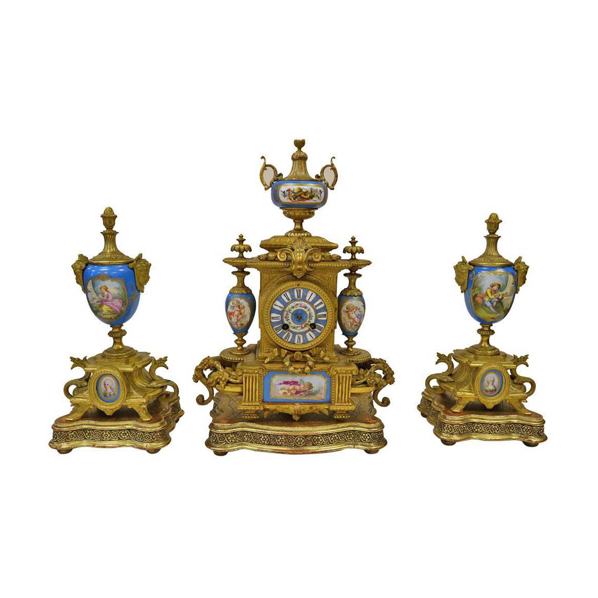 SEVRES DETAYLI BRONZ DÖKÜM SAAT VE ŞAMDAN TAKIMI