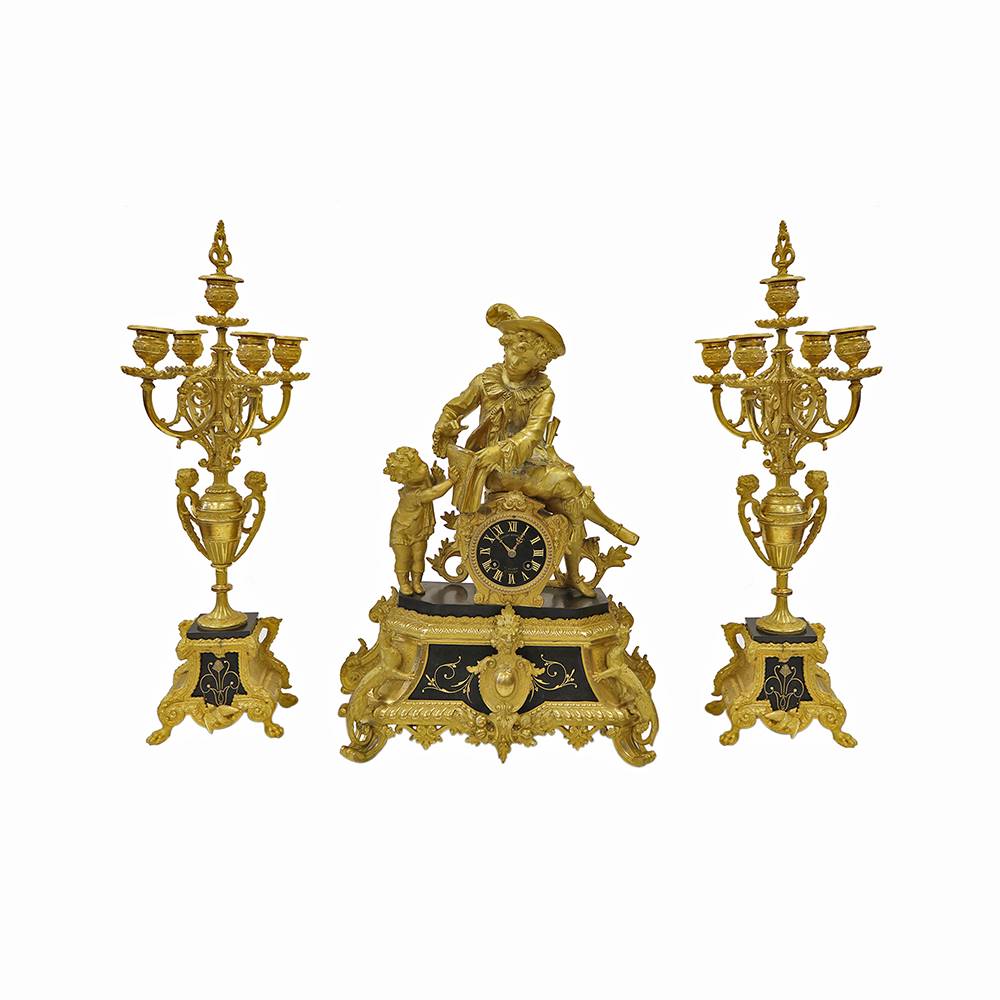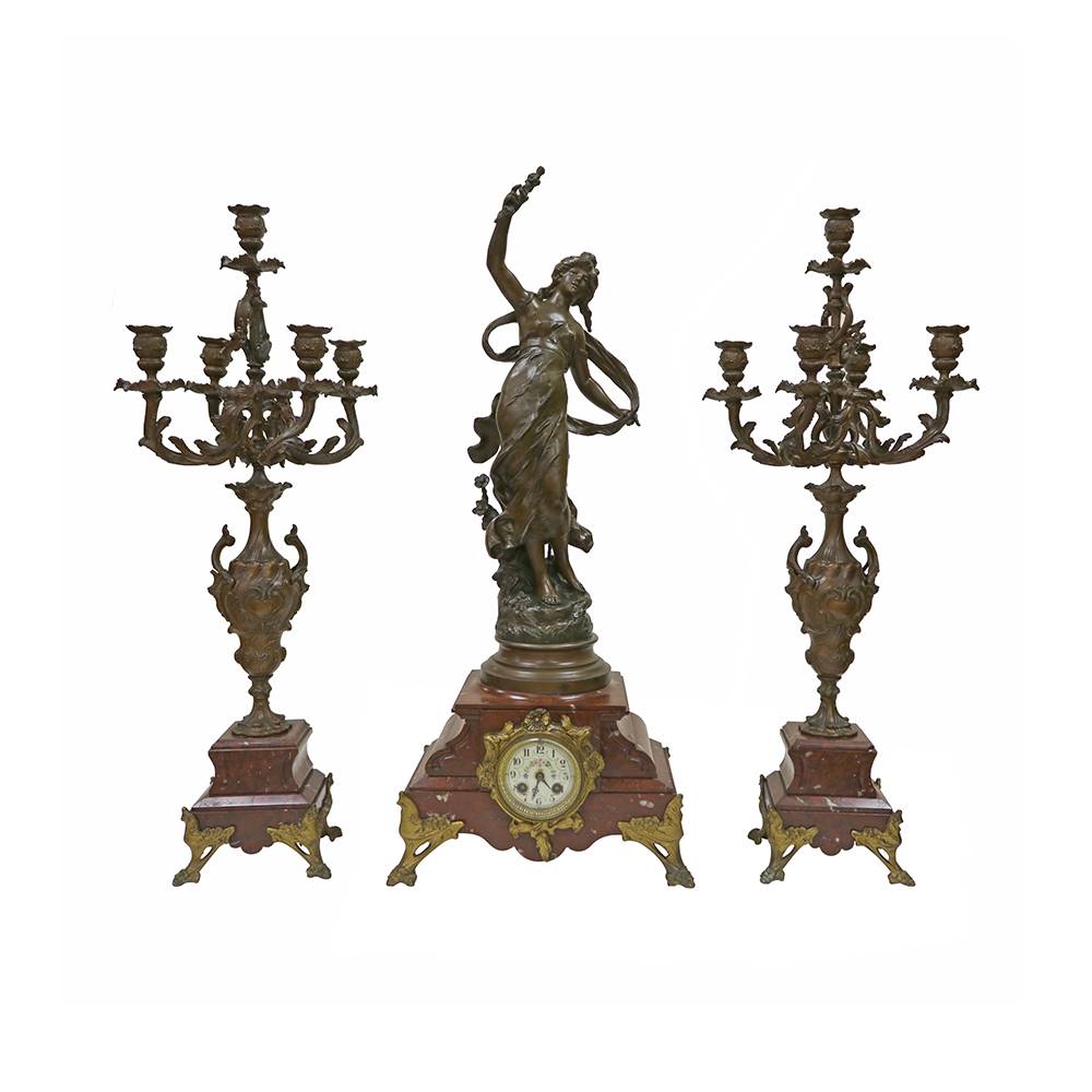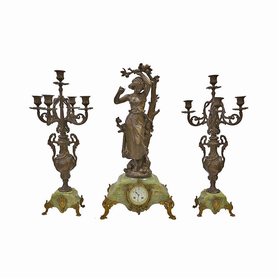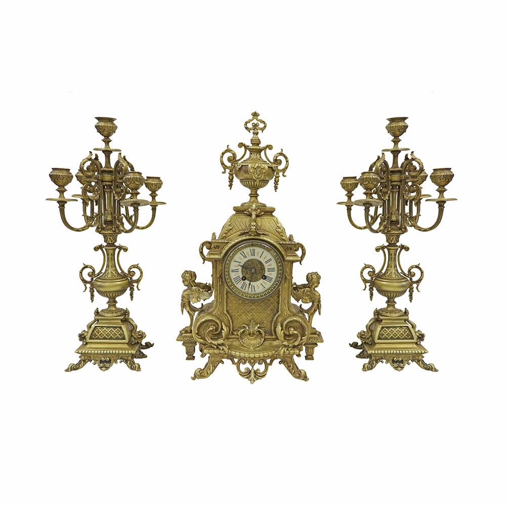 MELEK FİGÜRLÜ BRONZ SAAT VE ŞAMDAN TAKIMI