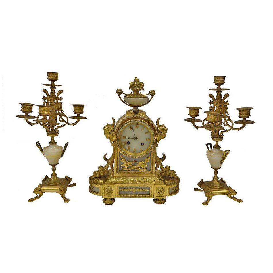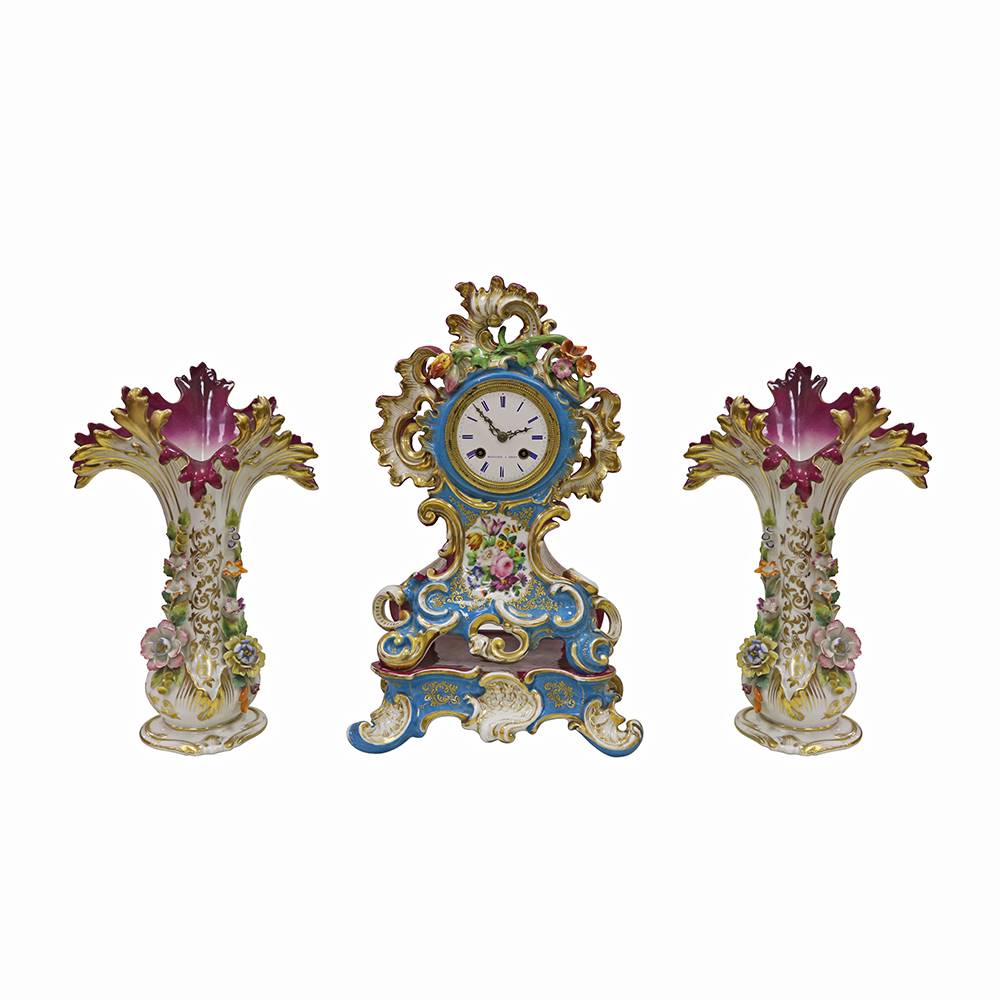 PORSELEN, BRONZ DETAYLI SAAT VE ŞAMDAN TAKIMI