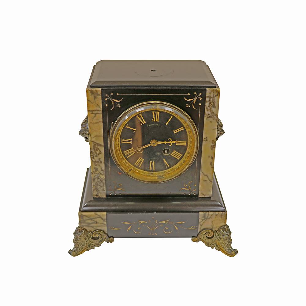 SİYAH MERMER ÜZERİ BRONZ DETAYLI SARKAÇLI SAAT