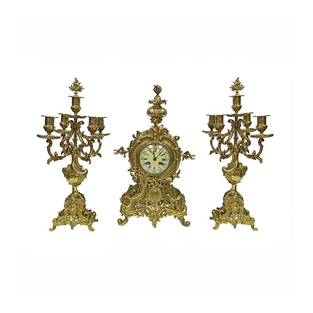 BRONZ DÖKÜM ŞAMDANLI SAAT TAKIMI