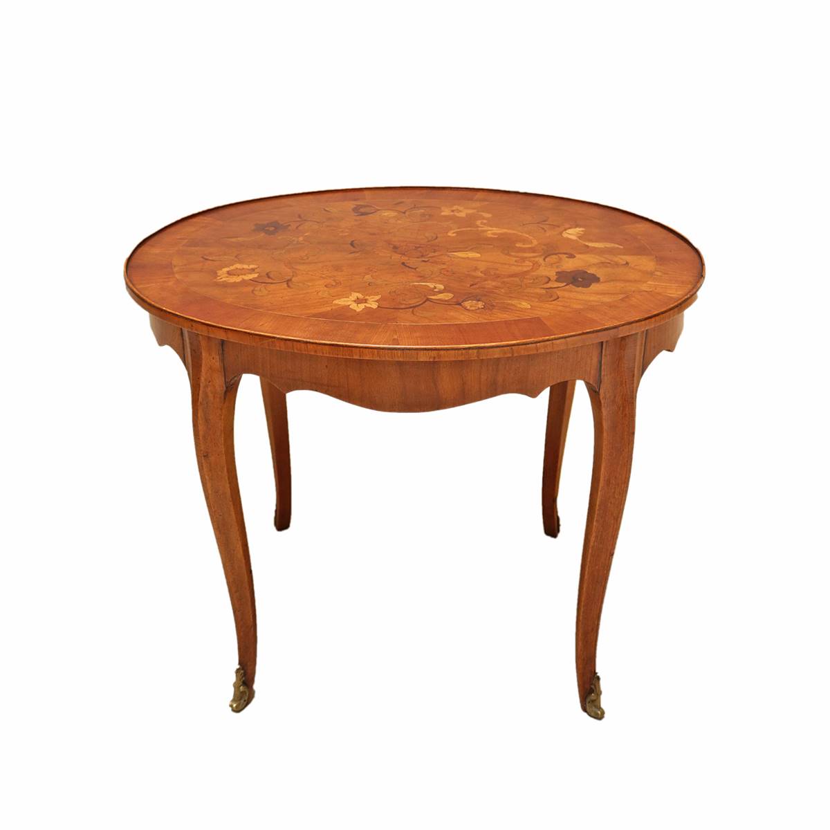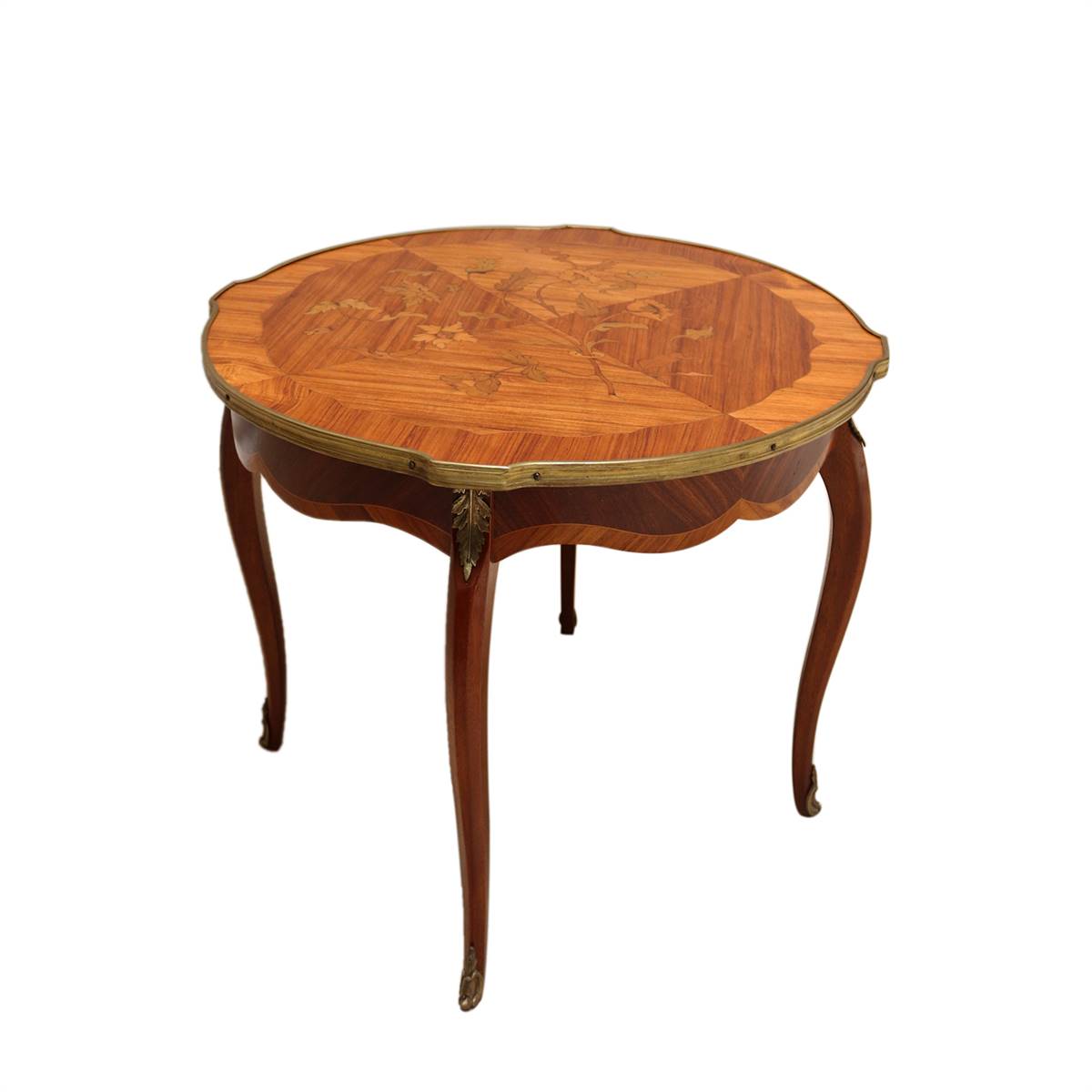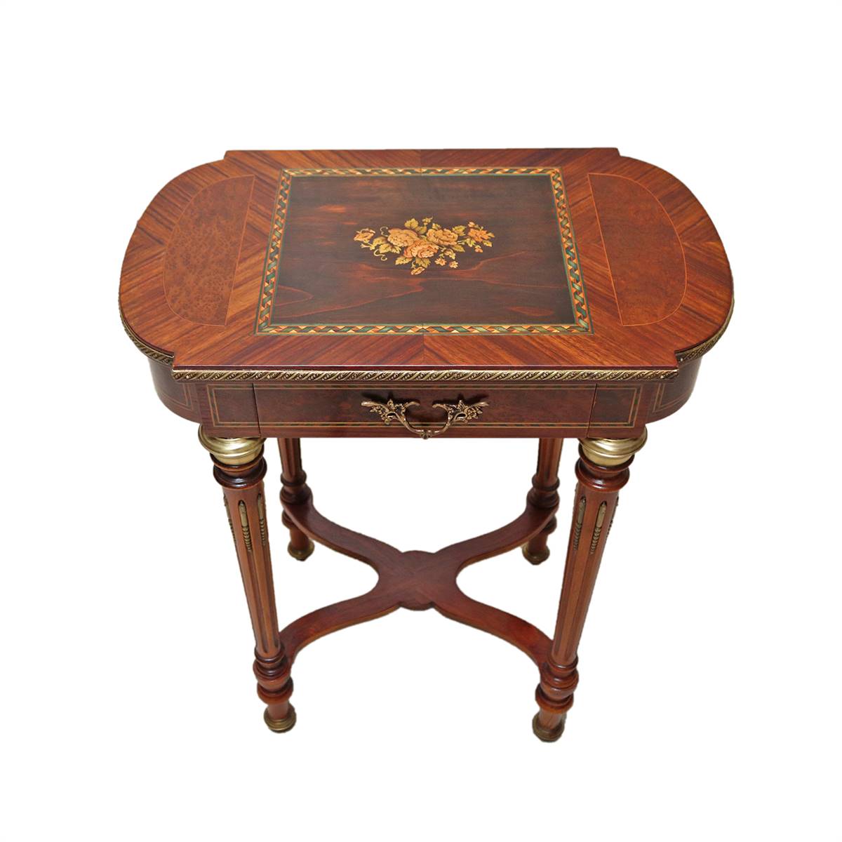 MARKÜTERİLİ, BRONZ DETAYLI VE ÇEKMECELİ MAUN SEHPA
