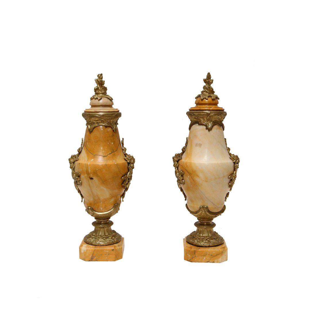 BRONZ DETAYLI MERMER ÇİFT VAZO