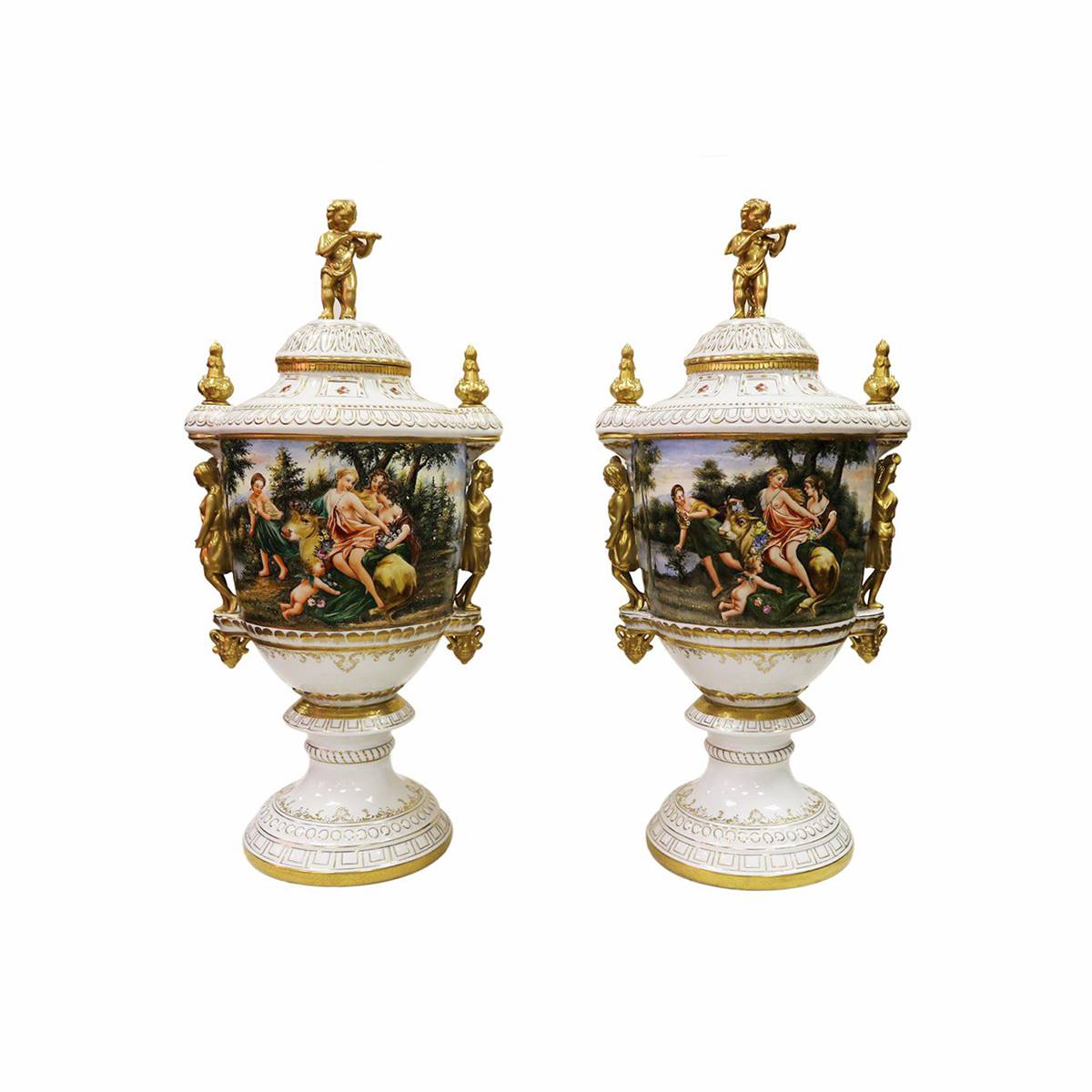 BRONZ MELEK FİİGÜRLÜ İKİZ PORSELEN SEVRES VAZO