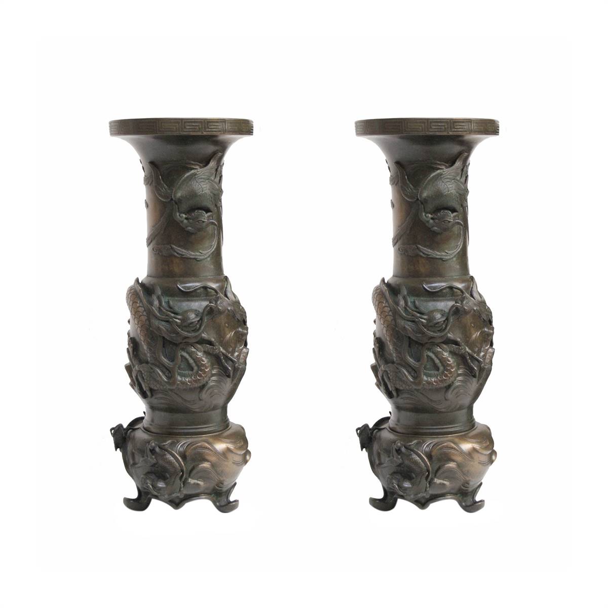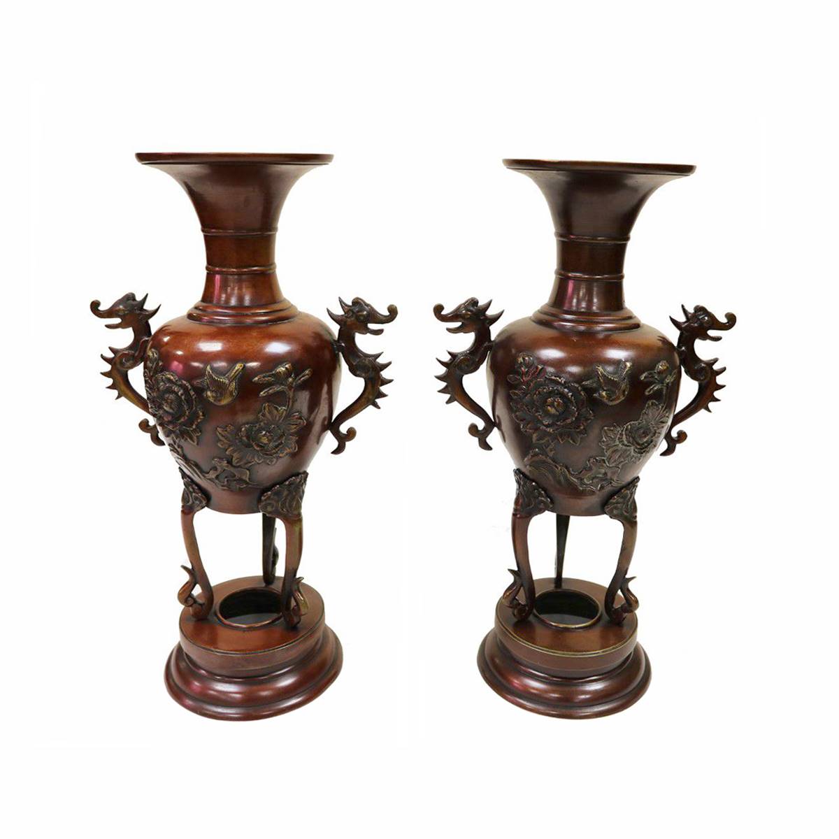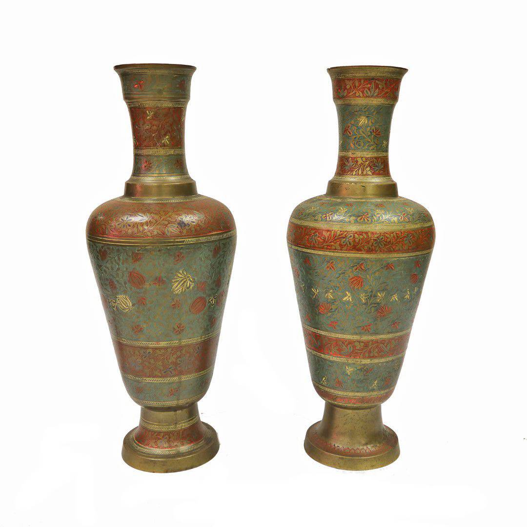 BRONZ ÜZERİ FİGÜRLÜ İKİZ VAZO