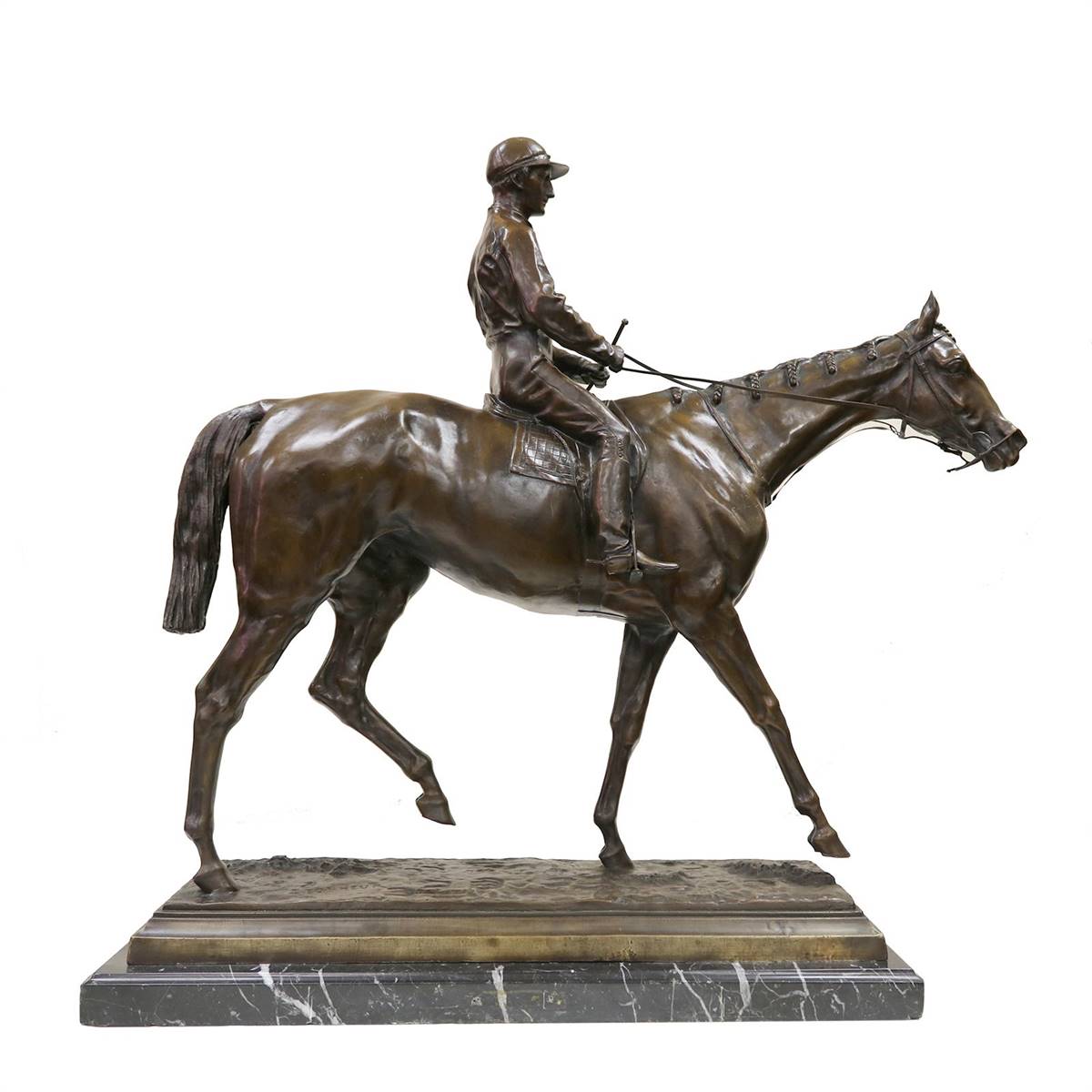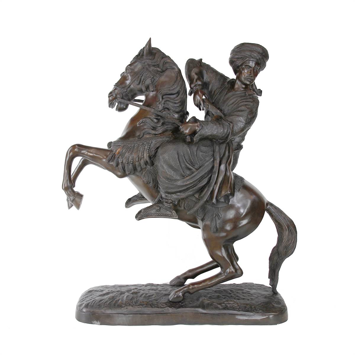 İMZALI, ATA BİNEN ERKEK FİGÜRLÜ BRONZ HEYKEL
