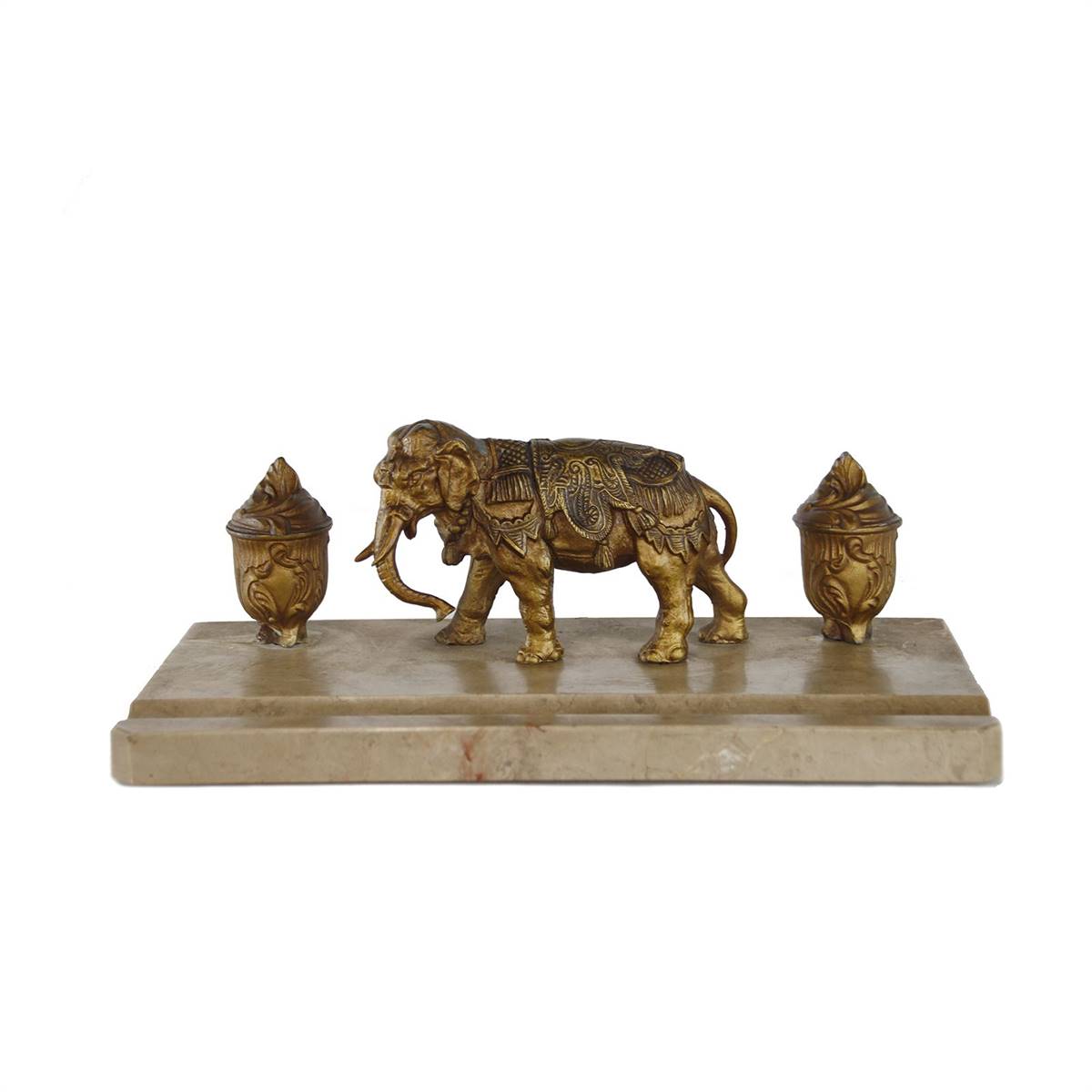 MERMER ZEMİN ÜZERİ BRONZ FİL HEYKEL