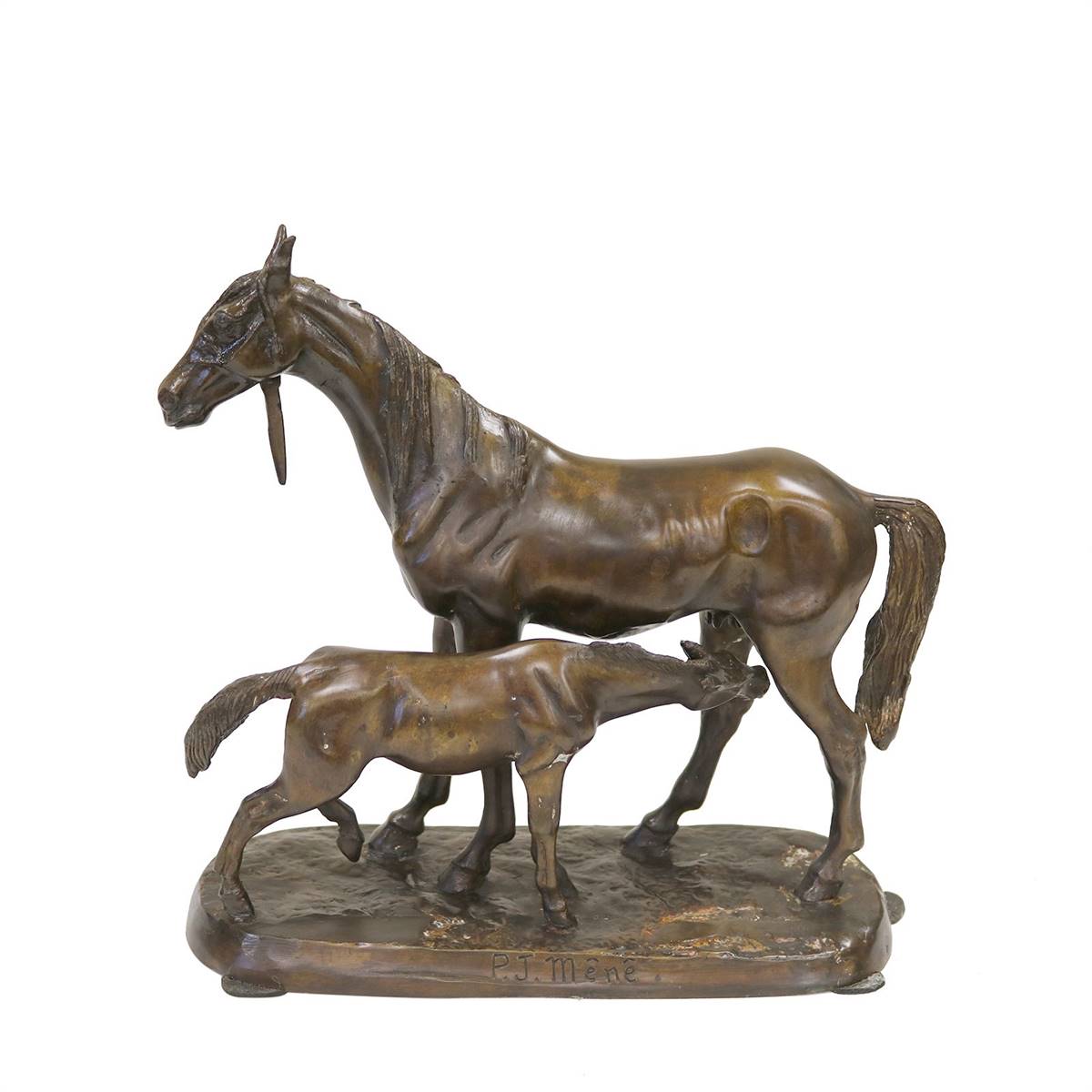 MERMER ZEMİNLİ, BRONZ AT HEYKELİ