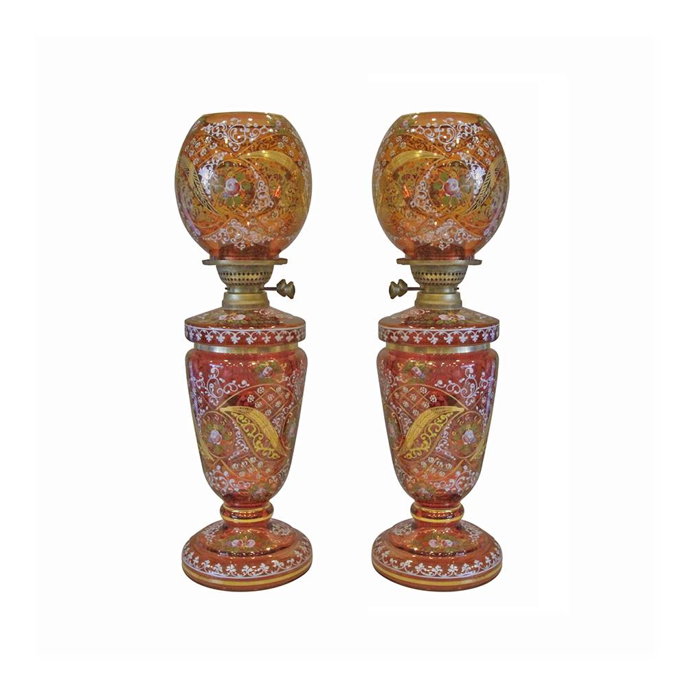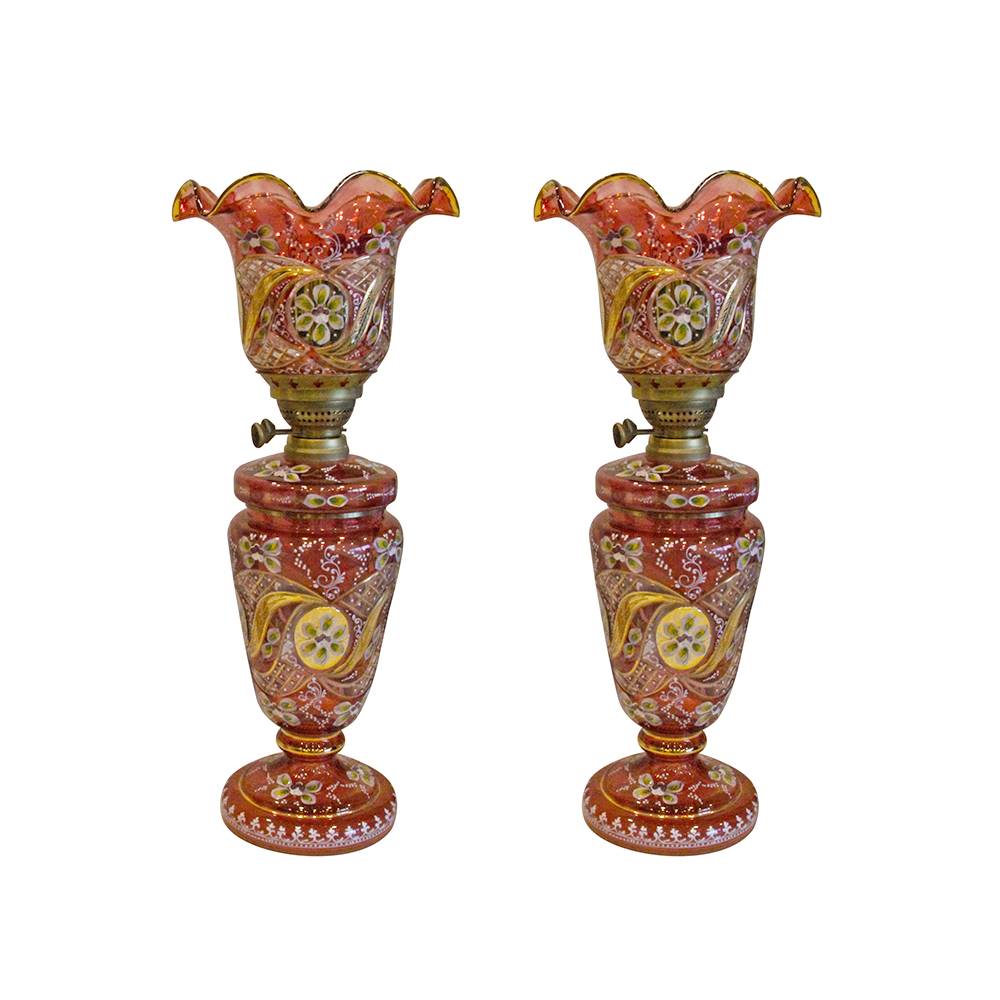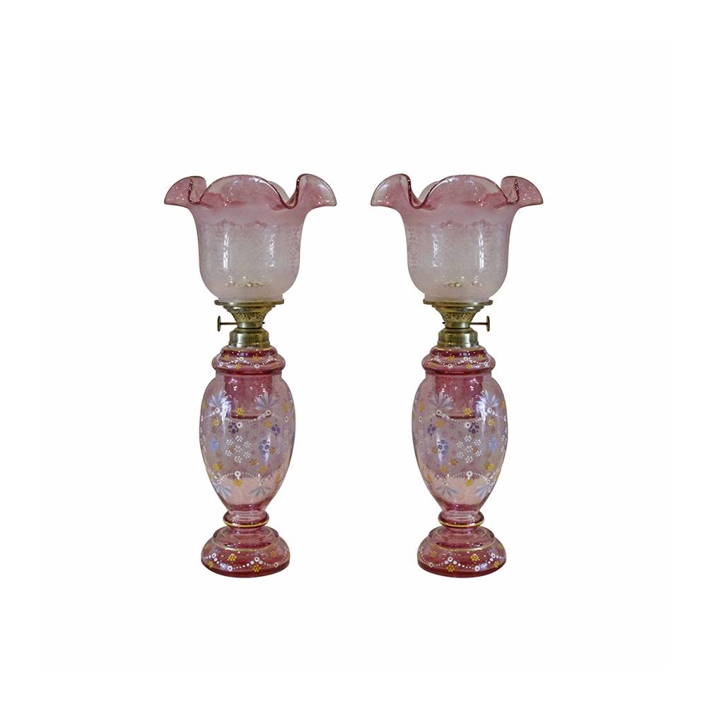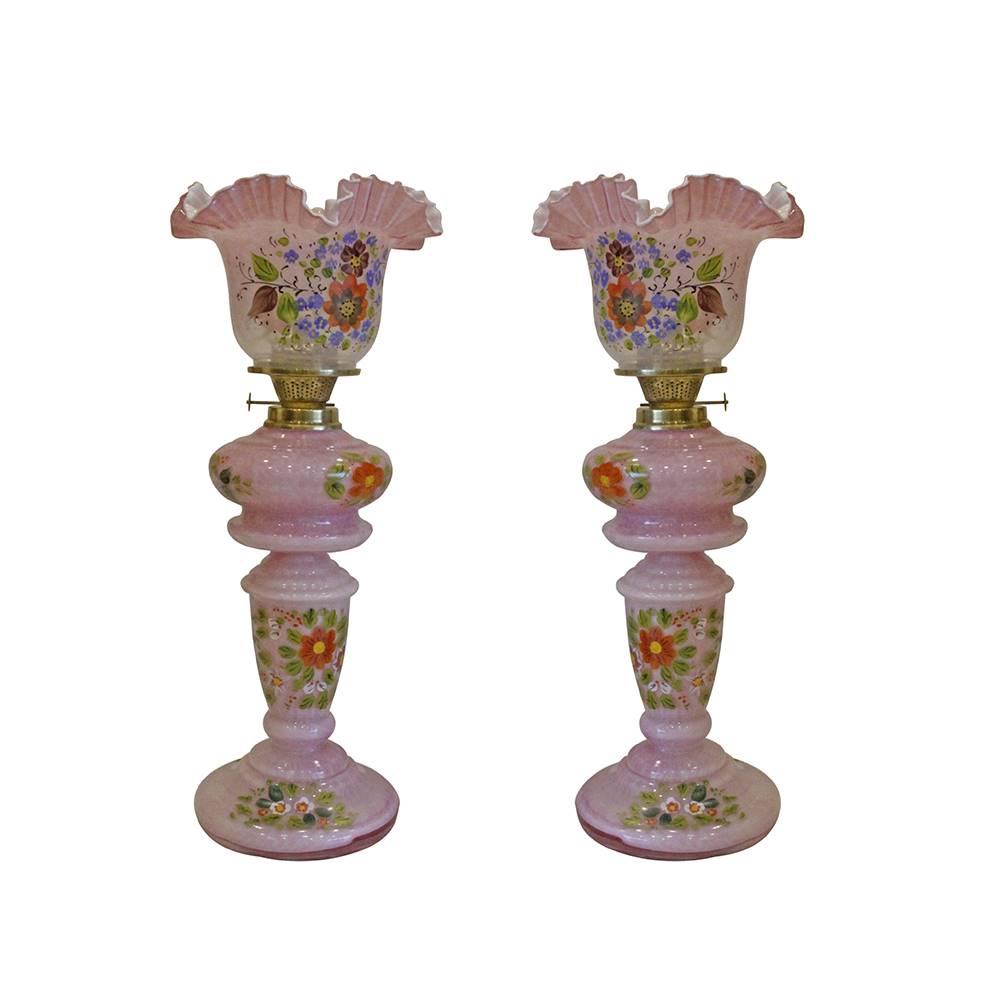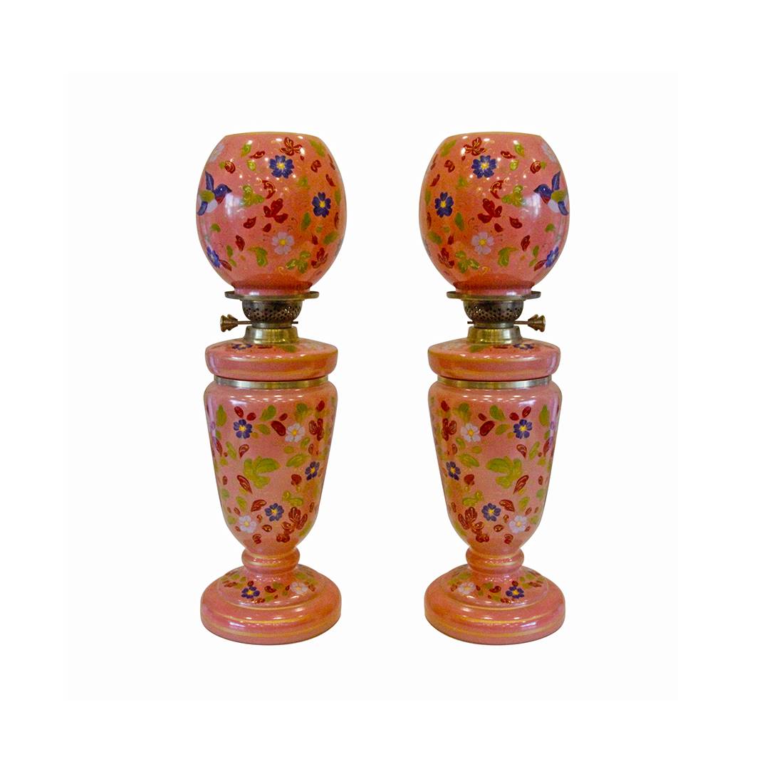 PEMBE OPALİN ÇİÇEK DESENLİ İKİZ GAZ LAMBASI