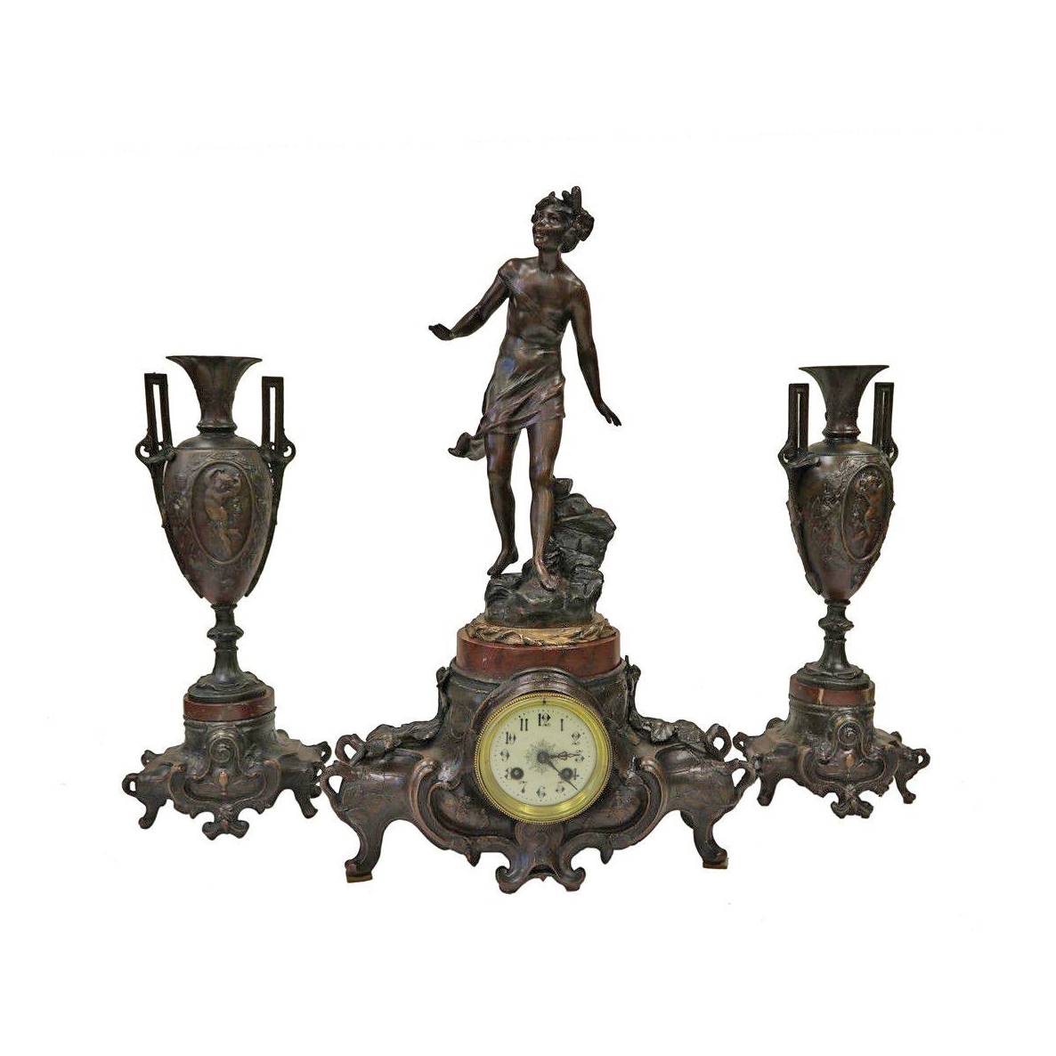 BRONZ FİGÜRLÜ, MERMER ZEMİNLİ SAAT TAKIMI