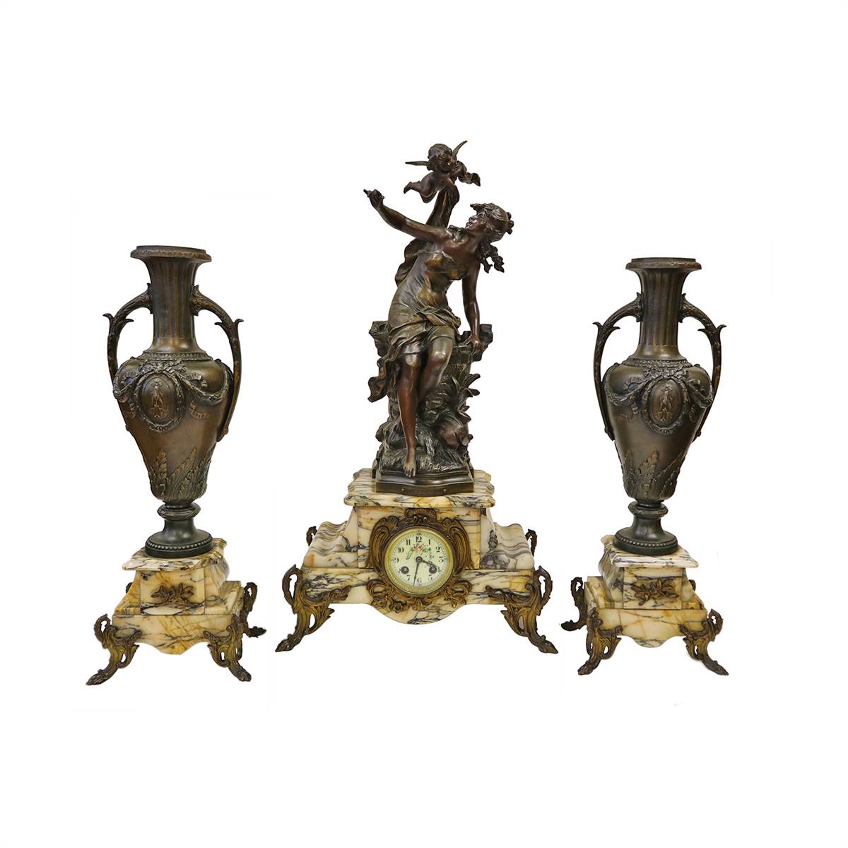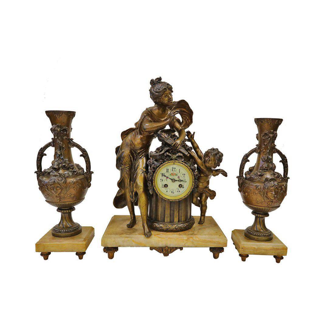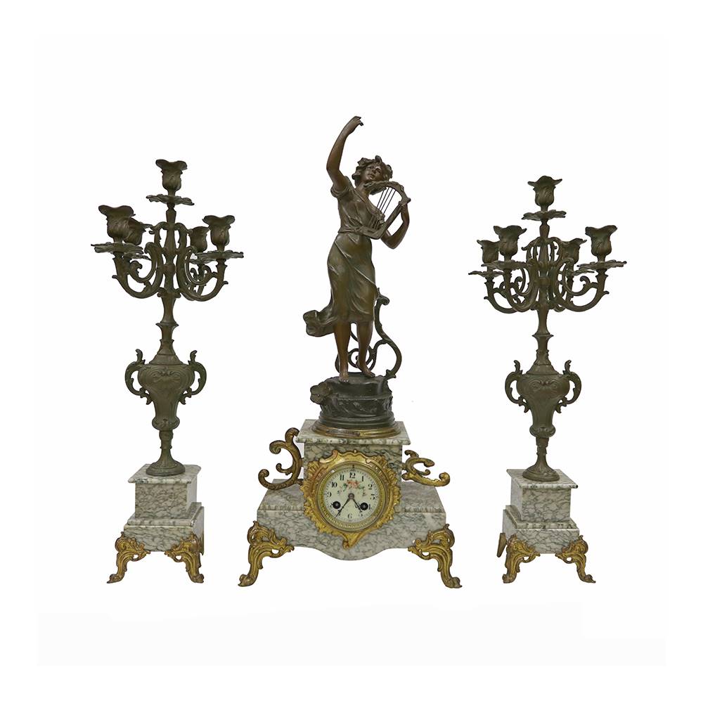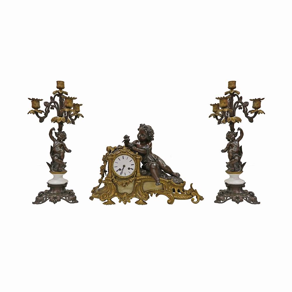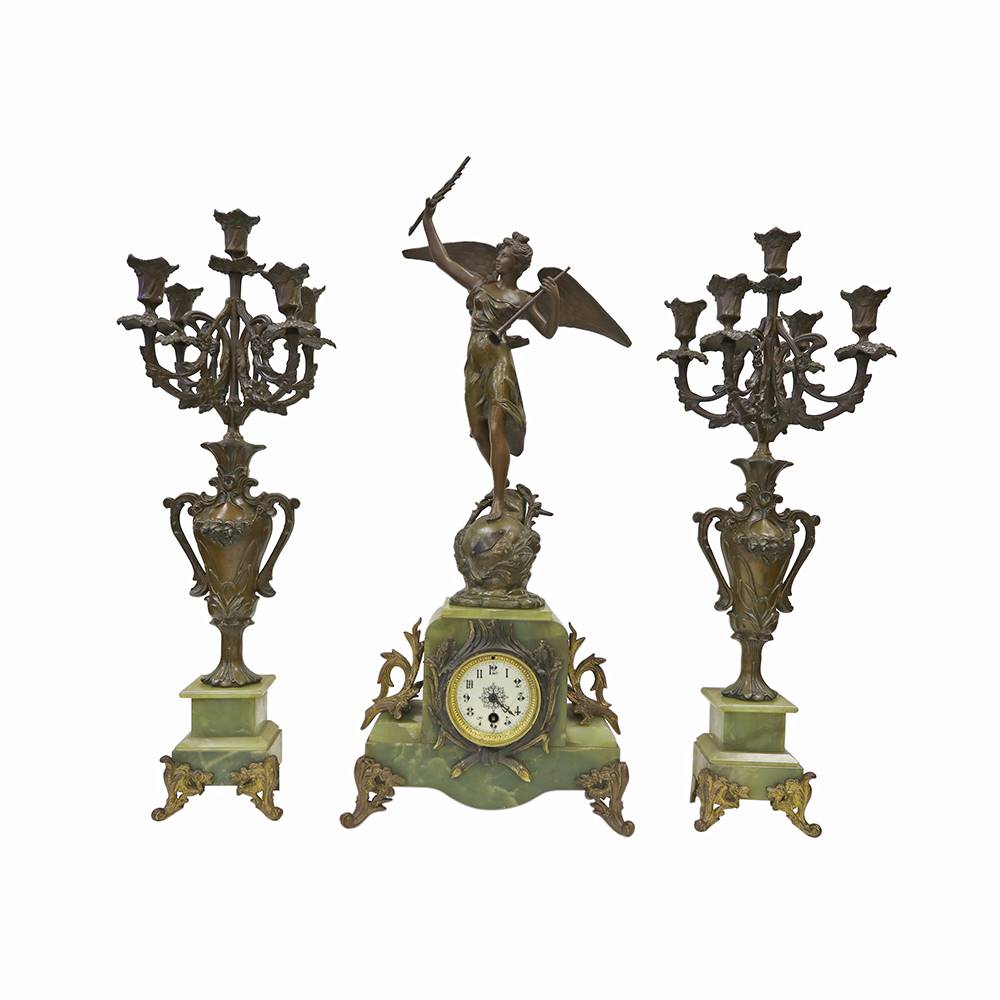 MELEK FİGÜRLÜ BRONZ SAAT VE ŞAMDAN TAKIMI