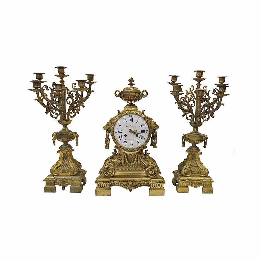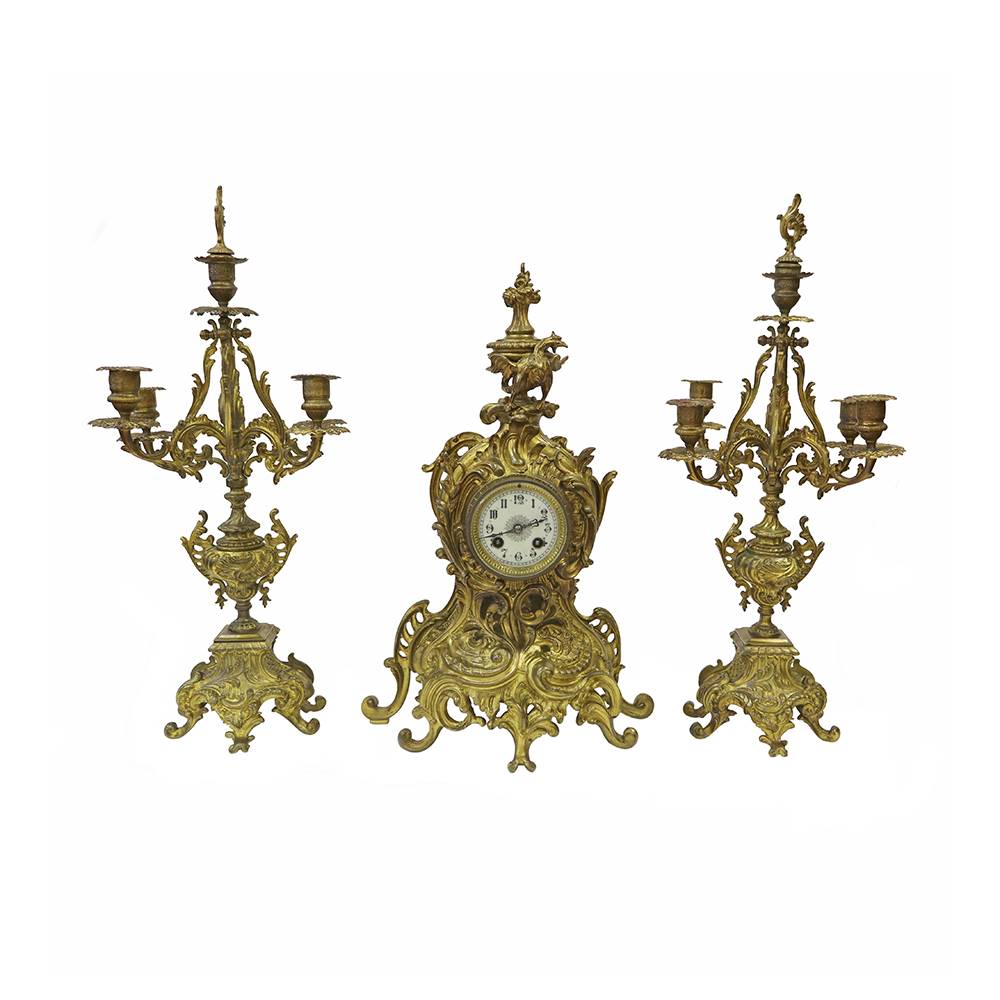 BRONZ DÖKÜM ŞAMDANLI SAAT TAKIMI