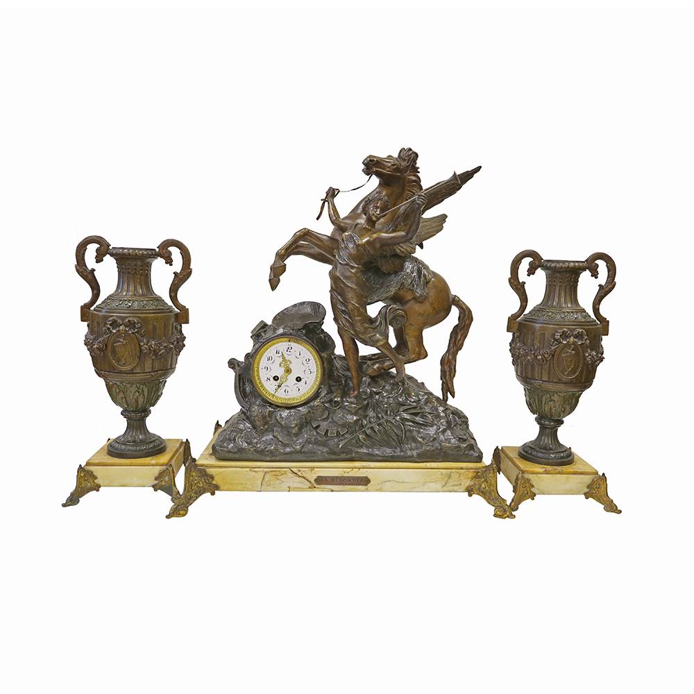par Hip. MOREAU İMZALI BRONZ HEYKELLİ SAAT TAKIMI