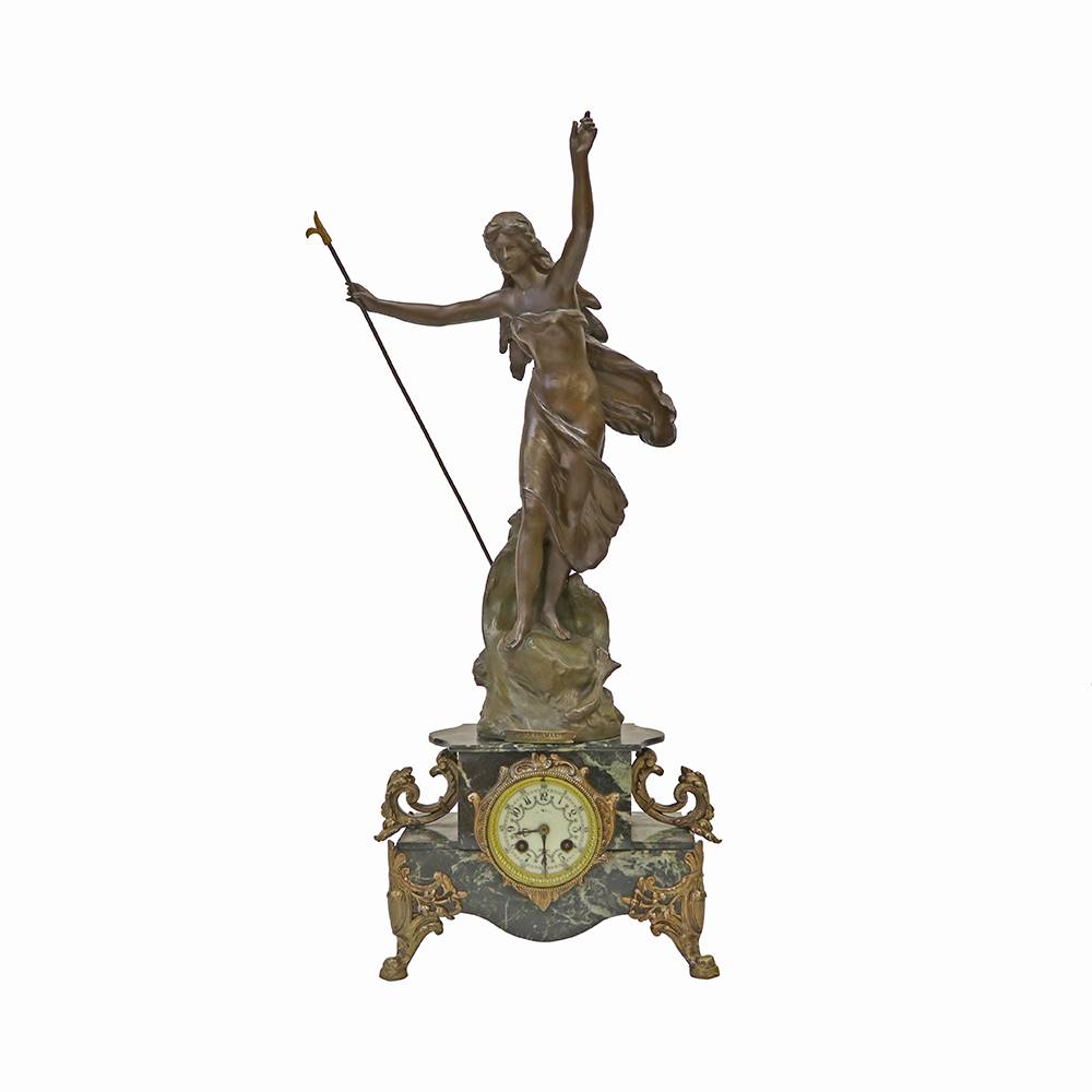 ONYX MERMER ZEMİNLİ, BRONZ HEYKELLİ SAAT TAKIMI