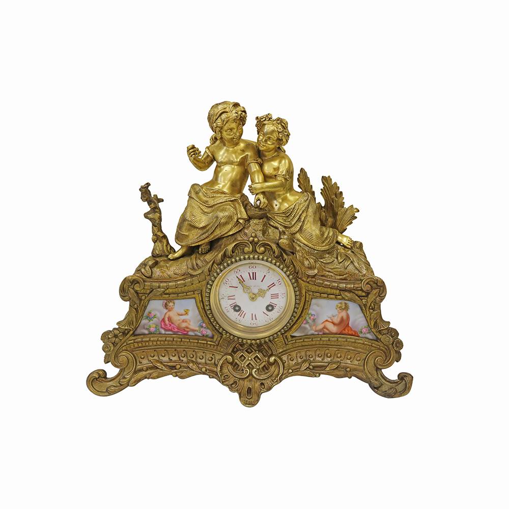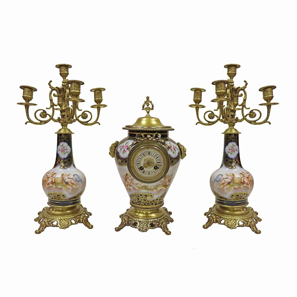 PORSELEN, BRONZ DETAYLI SAAT VE ŞAMDAN TAKIMI