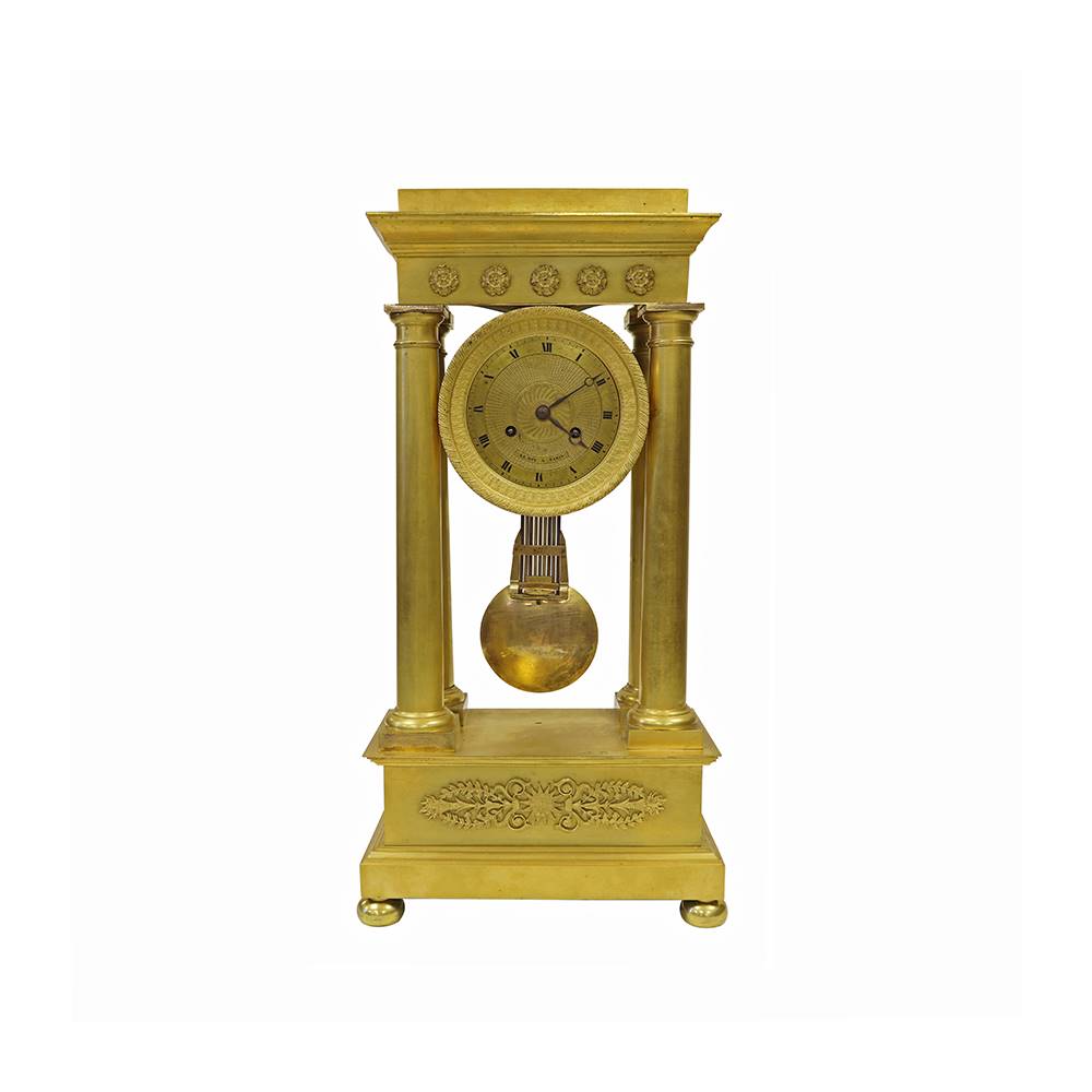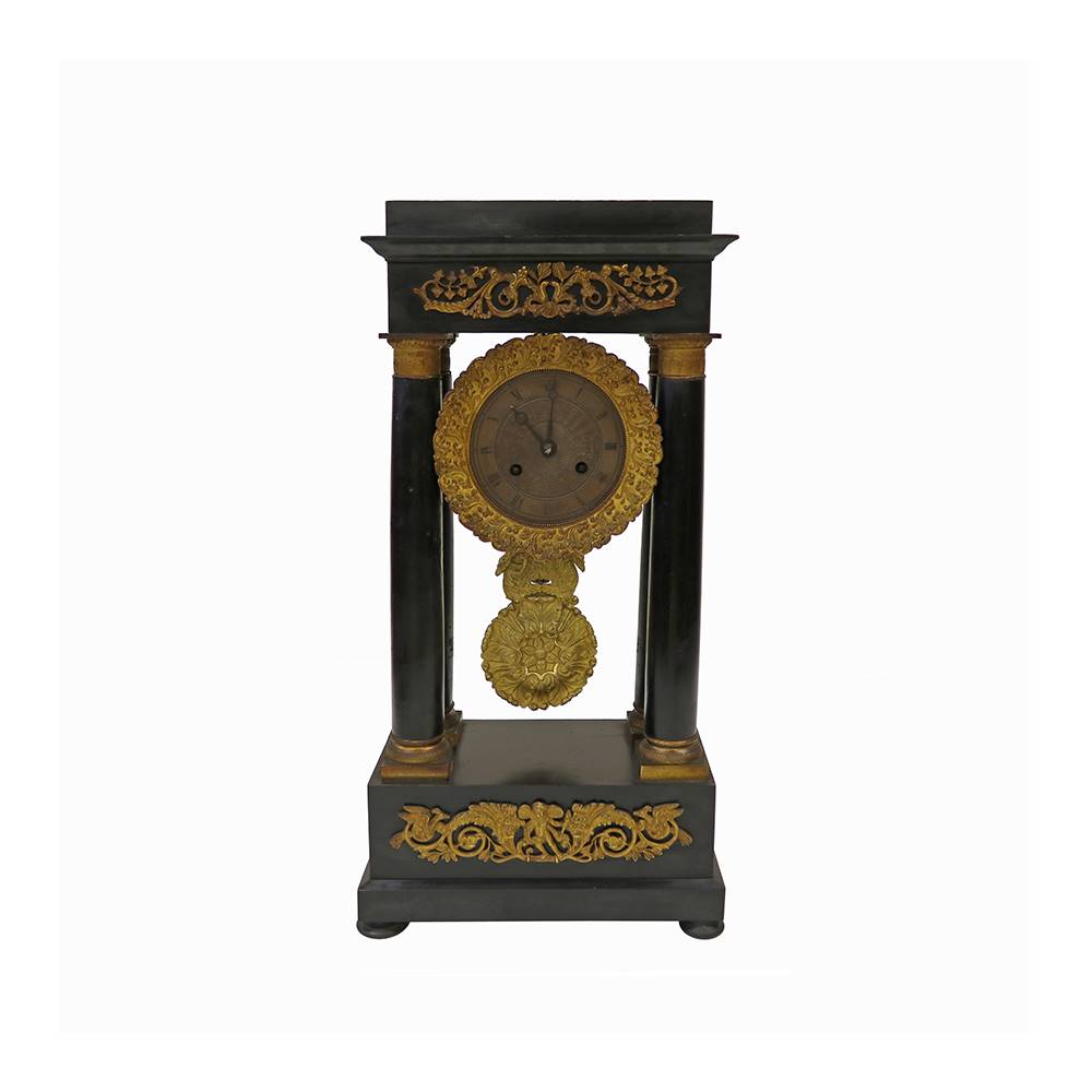SİYAH MERMER ÜZERİ BRONZ DETAYLI SARKAÇLI SAAT