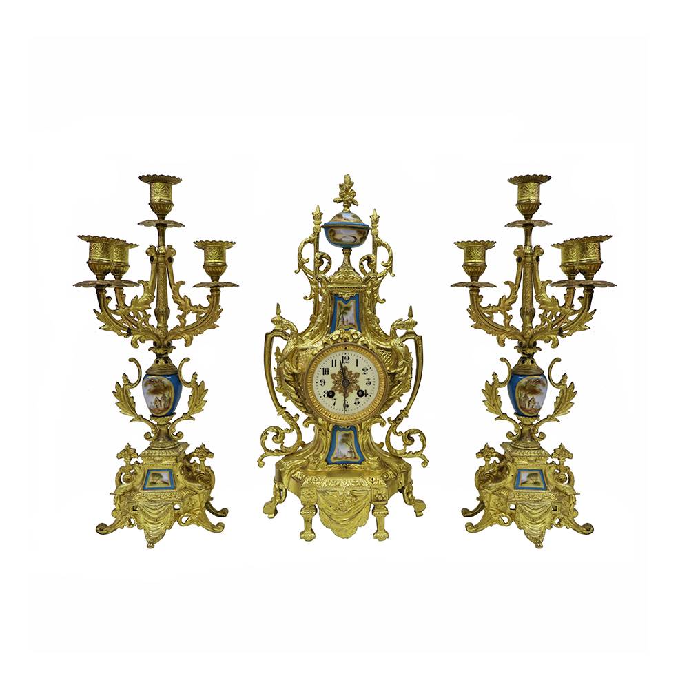 SEVRES DETAYLI BRONZ DÖKÜM SAAT VE ŞAMDAN TAKIMI