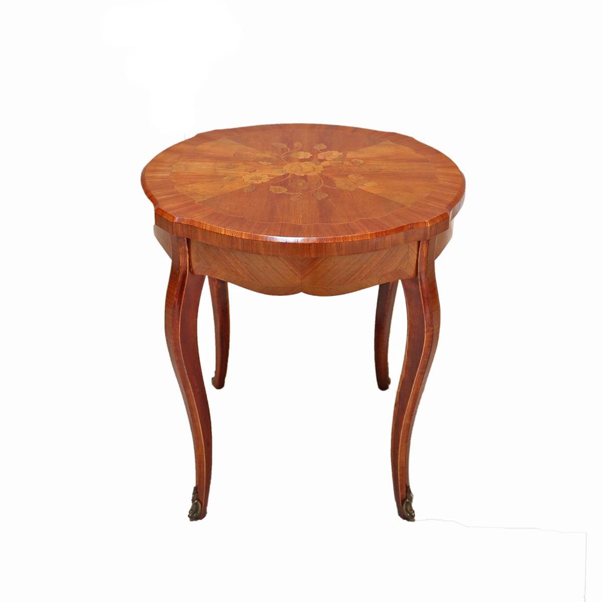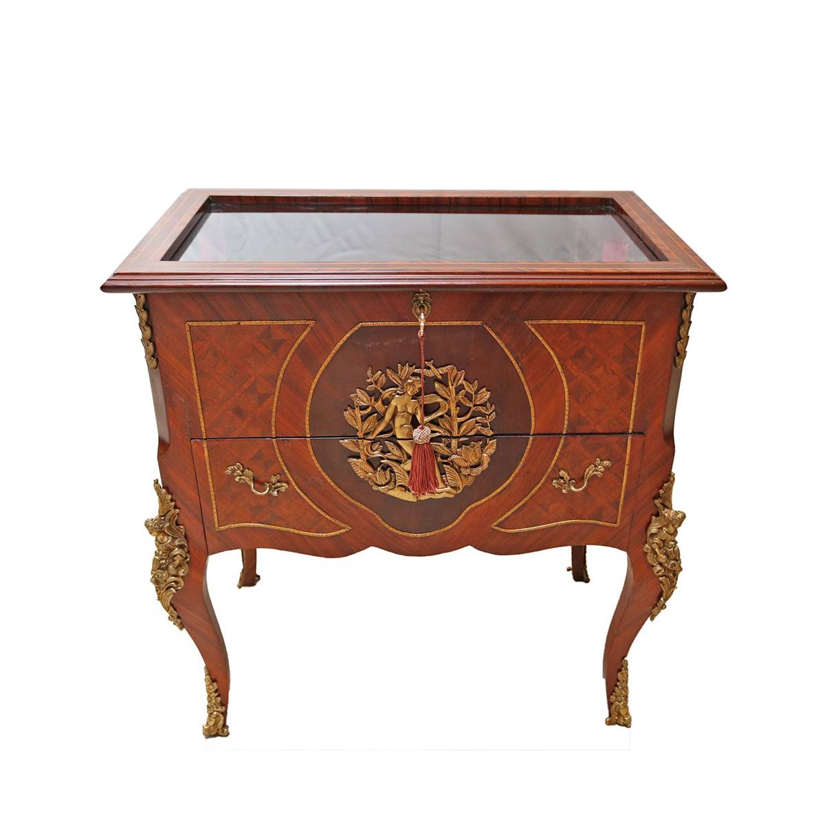 MARKÜTERİLİ, BRONZ DETAYLI VE ÇEKMECELİ MAUN SEHPA