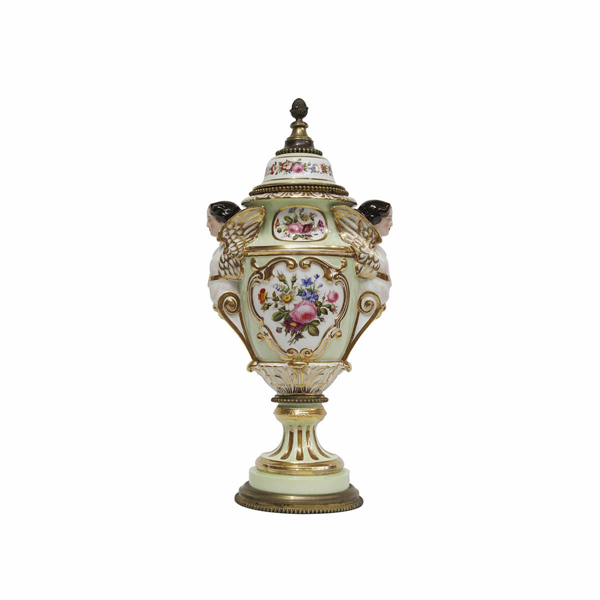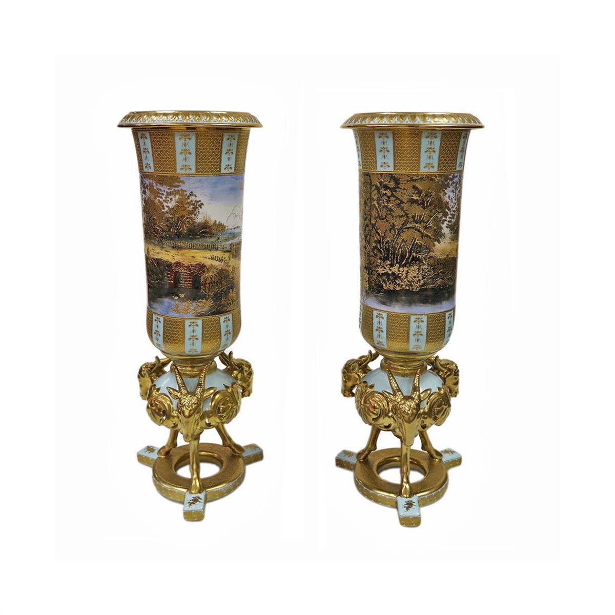 BRONZ MELEK FİİGÜRLÜ İKİZ PORSELEN SEVRES VAZO