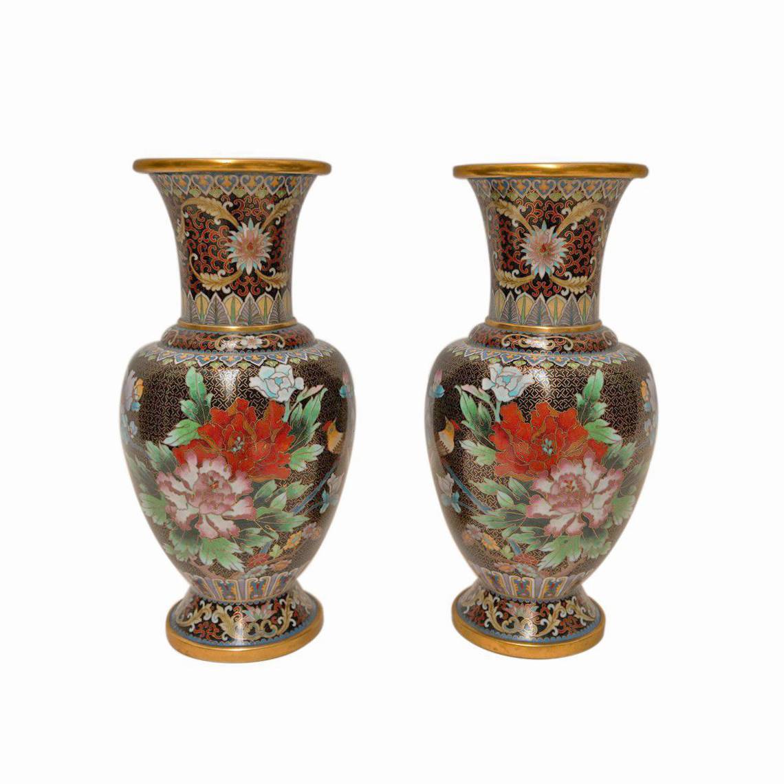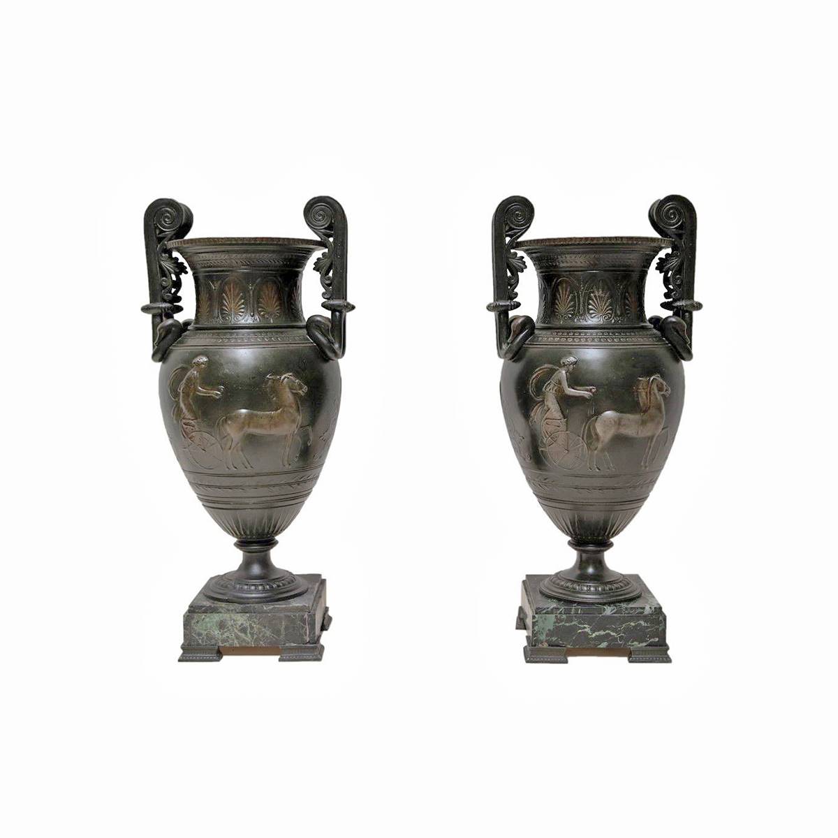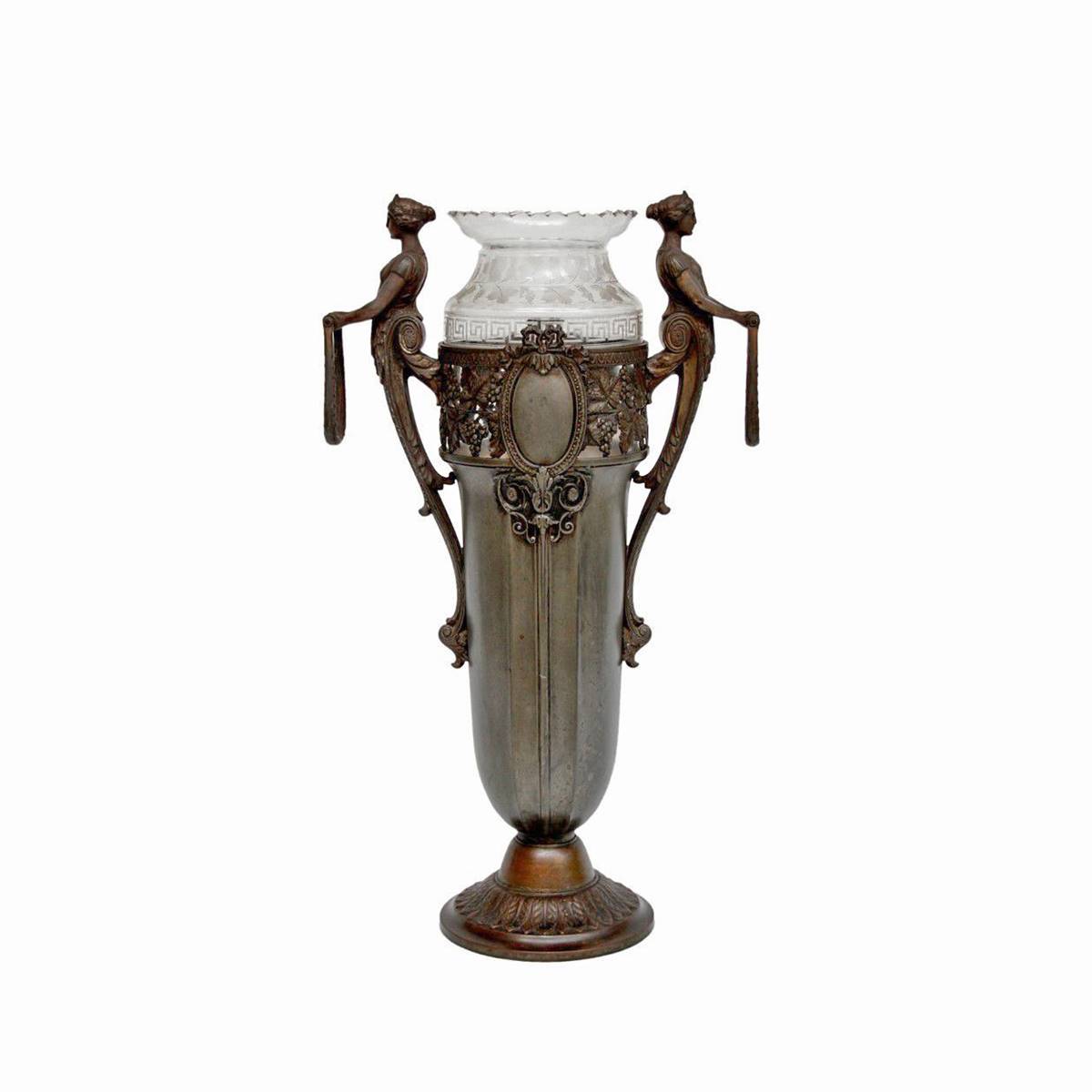 BRONZ ÜZERİ FİGÜRLÜ İKİZ VAZO