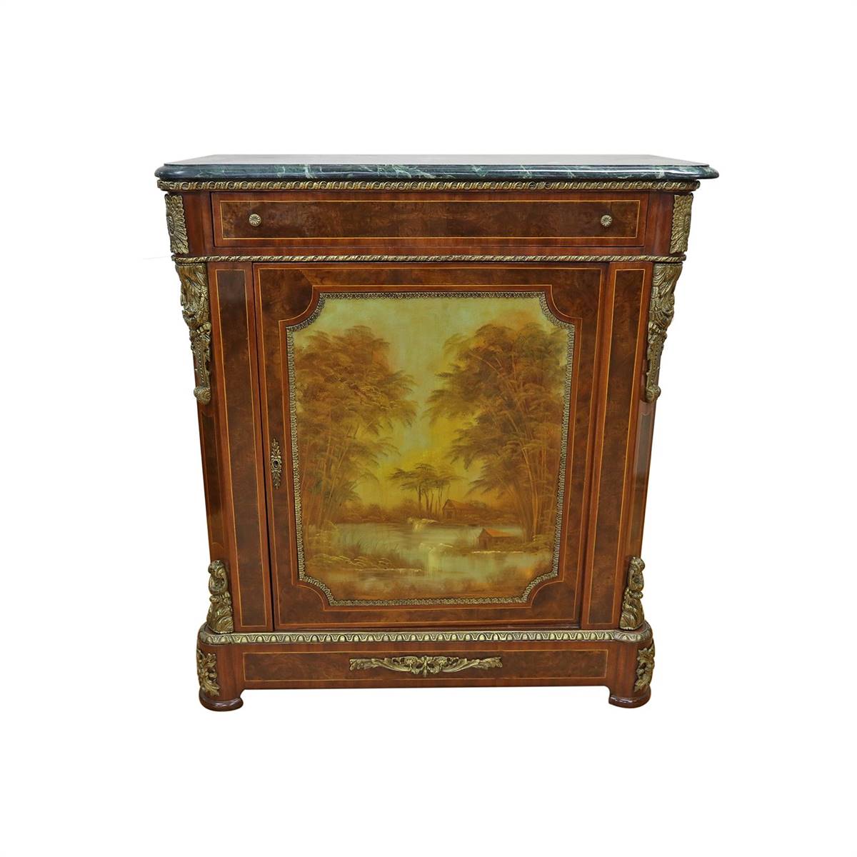 Ahşap üzeri yopun bronz şerit detayları olan Regence stili 20. yüzyıl bahü. Dönemin sade ve şık mobilyaları arasındadır. İngiliz tasarımıdır. Üzeri mermer ile detaylandırılmıştır. Kilitlenebilir tek kapısının içerisinde bulunan 2 raf sayesinde oldukça kullanışlı olarak üretilmiştir.